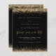 Gold Glitter Borders Script Wedding Black Save The Date. A budget price SMALLER 4.5” x 5.6” alternative. Available in a SEMI GLOSS 110 lb CARD STOCK which is the default option (recommended for invitations), OR a SATIN FINISH 80 lb THINNER PAPER STOCK (ideal for enclosures). Envelopes are an optional extra and are slightly larger than the card size. Gold faux glitter borders the top and bottom edges and an elegant set script for Save Our Date. Easily personalise the rest of the text to your details.