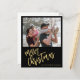 Modern Merry Christmas winter holidays family photo BUDGET greeting card template with trendy faux gold brush handwritten calligraphy script lettering. Personalise it with your photo and your text on both sides! +++++++++++++++++++++ PLEASE READ THIS BEFORE PURCHASING! This is a budget affordable card printed on a paper sheet (each sheet has one card). ++++ For the best rapport price-quality, our advice is to choose the Semi-Gloss paper type (it is thick enough to be used for stationery) ++++ If you need envelopes, choose the ENVELOPE OPTION. +++ Double-check all the information and spelling of your text because you will receive exactly what you see - no one else will check anything before printing. ++++ This card is designed for size 4.5" x 5.6". In the case you choose another size of the card and text goes outside page, everything needs to be fixed before adding the product to cart. Please ask Live Design Service for help.