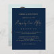 There are two paper options to choose from for this size (4.5 x 5.6”) in the Budget range. For this product, I would recommend the semi-gloss which is a 110 gsm card stock, similar in thickness to a postcard. The Satin option is a much thinner paper 80gsm. The default is set to semi-gloss. PLEASE NOTE there is ONE per sheet. BUDGET Gold Text Navy Blue Photo Happily Ever After Wedding Party Invitation. A set handwriting style script for Happily Ever After and the rest of the text you can easily personalise. Replace the sample on the back with your own.