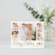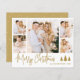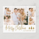 Budget Elegant Modern Calligraphy Script Simple Gold and White 5 Photo Collage Multi Photo Christmas Card. This festive, minimalist, five (5) photo holiday card features a pretty photo collage, 3 pine tree doodle, „Merry Christmas” greeting text which is written in a whimsical hand lettered signature font type. On the reverse side snowy dots pattern with a nice family photo. Pretty greeting card for your family and friends in Winter Holiday season.