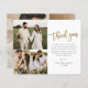 This budget modern photo collage thank you card features gold script thank you, personal message and a 3 photos on the front. The back includes a 4th photo that is a full bleed horizontal photo. Click edit to customize this design.