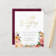 Elegant floral wedding invitation featuring "the wedding of" in faux gold script against a white background with blush and burgundy watercolor flowers and foliage at the bottom framing the wedding details. As part of the budget selection here on Zazzle, these invitations come in limited sizes and paper stocks. If you need a different size or paper stock, this design can be transferred to a standard 5x7 format using the design transfer tool for more options.