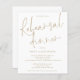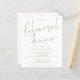 A value for money BUDGET alternative on a smaller size 4.5 x 5.6” semi-gloss 110lbs weight, which is of similar thickness to a postcard (however is not suitable to use as a postcard.). PLEASE NOTE there is ONE invite per sheet Budget Gold Text Wedding Rehearsal Dinner Invitation. Shown in classic gold and white. This modern design has elegant informal set script for Rehearsal Dinner and the rest of the typography you can easily personalise. You can also change text and background colours on either side if you wish via the Customise Further option.