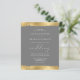 This elegant wedding invitation features a gold faux foil torn edge design at the top and bottom borders on a stylish grey background. The word "wedding" appears in calligraphic script. Customise the white text with the names of the bride and groom and the wedding details. The gold edge design is repeated on the reverse.
