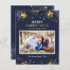 Budget Golden Blue Merry Christmas Photo Card Card