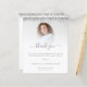 There are two paper options to choose from for this size (4.5 x 5.6”) in the Budget range. For this product, I would recommend the semi-gloss which is a 110 gsm card stock, similar in thickness to a postcard. The Satin option is a much thinner paper 80gsm. The default is set to semi-gloss. PLEASE NOTE there is ONE per sheet. Modern Graduation Photo Silver Glitter Thank You. Glam faux glitter borders are at the top on the both sides. Thank You is in an elegant script with swashes. Easily personalise the text to your own requirements, and replace the sample image with your own. To keep the minimalist contemporary look of this design, a photo with a light coloured background will work well.