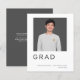 A budget price SMALLER 4.5” x 5.6” alternative. Available in a SEMI-GLOSS 110 lb CARD STOCK which is the default option (thicker for invitations), OR a SATIN FINISH 80 lb THINNER PAPER STOCK (ideal for enclosures). Envelopes are an optional extra and are slightly larger than the card size. . A contemporary style graduation announcement with your photo and details, with dark grey text and coordinating grey on the back. Easily personalise the text and replace the photo in the template with your own. A photo cropped to square before uploading will work best so your subject fits correctly in the placeholder. You can also change the text colours and background colours if you wish to better suit your photo via the Customise Further option. If you need any assistance please let me know.