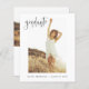Budget Graduation Grad Announcement Cards that have a photo (two pictures) on the front and back as well as the name of the school, graduation year, location, time and future plans. The High School or College Class of 20XX Graduation invitations contain a modern hand lettered cursive script typography that are elegant, simple and modern to use after you minimalist simple graduate achievement day.