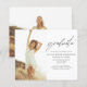 Budget Graduation Grad Announcement Cards that have a photo (two pictures) on the front and back as well as the name of the school, graduation year, location, time and future plans. The High School or College Class of 20XX Graduation invitations contain a modern hand lettered cursive script typography that are elegant, simple and modern to use after you minimalist simple graduate achievement day.