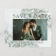 This elegant save-the-date card is the perfect way to announce your upcoming wedding. Featuring a beautiful watercolor eucalyptus greenery design and a space for your favorite photo on the front, it blends modern simplicity with natural charm. Easily customize with your names, date, and details to create a stylish and memorable first glimpse of your special day.