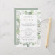 Green Foliage Frame Wedding Menu.A budget price size 5.5” x 8.5”, on an elegant 110 lb LINEN stock – for a luxury feel at great value, this is perfect for menus, as well as invitations and programs etc. This budget size alternative is also available in other paper choices. The SEMI-GLOSS 110 lb card stock is about the same thickness as a postcard, so also works well for invitations. The FELT 100 lbs paper is buff coloured, NOT white, so adds a rustic touch. The MATTE 80lbs paper stock is bright white, for crisp printing, great for your menus and programs, whilst the SATIN 80lbs paper is thin and light, ideal for enclosures. PLEASE NOTE THE OPTIONAL ENVELOPES ARE A LITTLE BIGGER IN SIZE AT 6.75” x 9” approx. An elegant greenery border with text in a mix of black and gold. The text, which you can easily personalise is centred. A coordinating sage green is on the back.
