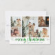 Modern Green Merry Christmas Heart Script 5 Photo Holiday Card