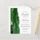 The left-hand edge of this elegant modern wedding invitation features a hunter green watercolor agate border trimmed with faux silver glitter. The customisable text combines handwriting, copperplate and italic fonts in charcoal grey on a white background. The reverse side provides space for wedding details on a solid white background, along with a QR code guests can scan to visit your website and RSVP, which saves the cost of printing and mailing separate RSVP cards.