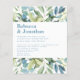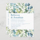 Budget paper Wedding Invitation features an elegant watercolor foliage leaf illustration with a green and blue colour scheme. Modern and clean typographical design, this wedding day invitation is ready for you to customise with the details of your special day. Part of an ever-growing range of stationery.