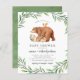Budget Greenery Woodland Animals Baby Shower Invitation. A gender-neutral baby shower with hand-painted forest animal friends: a deer fawn, bunny rabbit, owl, bear cub, and squirrel framed by a border of watercolor greenery. Featuring a chic, rustic script typography on a white background. Perfect for baby boy, baby girl, gender neutral or gender reveal shower.