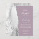 The left-hand edge of this elegant modern wedding invitation features a grey and white watercolor agate border trimmed with faux silver glitter. The customisable text combines white handwriting, copperplate and italic fonts on a mauve background. The reverse side features a matching grey, white and silver agate design. NOTE: Envelopes are not automatically included with these budget invitations, so please remember to choose the "white envelopes" option!