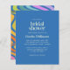 This vibrant bridal shower invitation features a bold cobalt blue front with clean modern typography and elegant script details. The back showcases a playful retro stripe pattern in bright rainbow hues, adding a fun and groovy twist. Perfect for celebrating a stylish bride-to-be with a colourful, upbeat shower. Printed on budget-friendly paper, it's ideal for modern, backyard, or casual gatherings with personality.