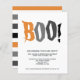 BUDGET Halloween Party Boo! Personalised invitation .. designed with a orange, black and grey striped background and bold text - a simple, modern Halloween party invitation from Ricaso - perfect for your spooktacular event