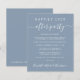 Budget-friendly dusty blue elopement or private wedding announcement and wedding reception invitation. The front features "Happily Ever After Party" in a mix of simple white typography and a contemporary white script with swashes, and you can personalise your message and invitation and add your names in a signature-like script. The reverse side features your first names and wedding date.