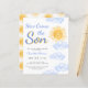 Invite family and friends to your sun-themed baby shower with this budget boys' baby shower invitation. It features the text "Here Comes The Son" in stylish blue typography with a cute yellow watercolor sun and clouds. The back is decorated with a smiling sun pattern. Easily customisable. Original Watercolor © Michele Davies.