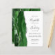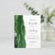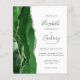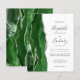 The left-hand edge of this elegant modern wedding invitation features a hunter green watercolor agate border trimmed with faux silver glitter. The customisable text combines handwriting, copperplate and italic fonts in charcoal grey on a white background. The reverse side features a matching green and silver agate design.