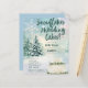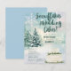 Beautiful and enchanting winter bridal shower invitation featuring modern handwritten style script, snowflakes, wedding cake, evergreens and snow in shades of teal, cool blue and white. Available as a digital download or printed. Design by LeahG of budgetweddinginvites.com