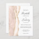 The left-hand edge of this elegant modern wedding invitation features a watercolor agate border in shades of ivory and blush, trimmed with faux gold glitter. The customisable text combines handwriting, copperplate and italic fonts in charcoal grey on a white background. The reverse side provides space for wedding details, along with a QR code guests can scan to visit your website and RSVP, which saves the cost of printing and mailing separate RSVP cards. NOTE: Envelopes are not automatically included with these budget invitations, so please remember to choose the "white envelopes" option!