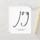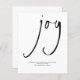 Budget Joy Elegant Script Black White Holiday. A budget price SMALLER 4.5” x 5.6” flat card for your festive greetings on a shiny SEMI GLOSS 110 lb card stock (similar to the thickness of a postcard) PLEASE NOTE: The envelope supplied with this card is slightly larger than the card itself. Joy is in a stylish handwritten style and easily personalise your greeting and name. Shown in classic black and white. Changes to colours of text and background can be made if you wish via the customise further option.