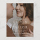 The design features an intertwined ampersand elegantly connecting the couple's names, which are displayed in a large serif font for a timeless and sophisticated look. The wedding date is beautifully written in script calligraphy, adding a graceful touch to the layout. The invitation's background showcases a photo of the couple, creating a personal and intimate feel while blending seamlessly with the typography and overall aesthetic.