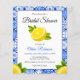 Mediterranean Bridal Shower Theme - Budget Mediterranean Italian Blue Tile - Lemon Bridal Shower Invitation!