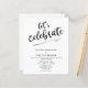 Share the joy of your special day with our Budget “Let’s Celebrate” Wedding Invitation, an elegant and affordable choice for modern couples. Designed with simplicity and style in mind, this invitation features clean lines, graceful typography, and a cheerful “Let’s Celebrate” headline that perfectly sets the tone for your big day. Printed on quality cardstock or available as a digital download, it delivers a polished, professional look while staying budget-friendly. The minimalist layout allows your names, date, and venue details to shine beautifully without distraction. Ideal for any wedding theme—whether rustic, modern, or romantic—it offers timeless elegance on a budget. Personalize it with your favorite colors, fonts, or message to make it uniquely yours. Despite its simplicity, it exudes warmth, joy, and sophistication. Invite your loved ones in style with an invitation that proves affordability and elegance can go hand in hand.