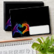 From the vibrant “Heart of Pride” collection, this wedding envelope radiates inclusivity, artistry, and celebration from the very first glance. The front showcases the signature Heart of Pride artwork — two brilliantly colored hands forming a glowing heart against a deep black background — creating a bold, meaningful introduction to your wedding suite.