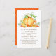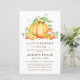 This sweet, gender neutral 5.5" x 8.5" baby shower invitation featuring a large watercolor pumpkin surrounded by fall leaves and eucalyptus would be perfect for your shower! It's fabulous for a fall or harvest time drive by baby shower. It has a coordinating deep orange back with tiny white polka dots. So cute!