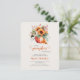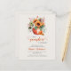 This cute baby shower invitation features a watercolor pumpkin overflowing with fall flowers and foliage, including sunflowers, above the words "a little pumpkin is on the way." The word "pumpkin" is in burnt orange handwriting script decorated with curlicues in imitation of pumpkin vines. Personalise the text with the name of the mum-to-be in burnt orange script and the details in charcoal grey sans serif font on a beige background. Ideal for a gender-neutral fall baby shower.