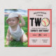 Introducing the Budget Little Slugger Baseball Photo 2nd Birthday Invitation, featuring a personalised photo of your baby. This invitation combines a cool and modern aesthetic with a baseball theme, perfect for a sports-loving kid's birthday party. The red colour and bold typography creates a visually striking design. With a playful font, modern typography, and a red colour palette, this invitation appeals to parents seeking a contemporary look. It captures the energy and excitement of a young athlete, fostering a connection to the child's interests. Celebrate your little slugger's second special day with this visually captivating and personalised invitation that promises an unforgettable sports-themed celebration. Don't miss out on this baseball theme design to start your little slugger's birthday party plans without a pinch to your pocket.