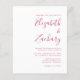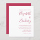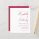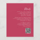 This simple modern wedding invitation features magenta pink text on a white background. Add the names of the bride and groom in stylish handwriting calligraphy and the details in sans serif font. The reverse side provides space for wedding details on a solid magenta background, along with a QR code guests can scan to visit your website and RSVP. NOTE: Envelopes are not automatically included with these budget invitations, so please remember to choose the "white envelopes" option!