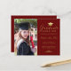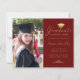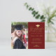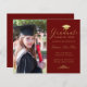 This elegant personalised budget photo graduation announcement card features your photo on the left and to the right a faux gold grad cap with the word "Graduate", class/year, name and other ceremony details in formal faux gold script calligraphy to personalise on an red maroon background. Designed by Susan Coffey.