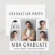 Budget-friendly modern MBA masters degree graduation announcement and party invitation featuring a 4 picture photo collage, "MBA Graduate" written in large capital letters and his or her class year, name and school or university in simple typography. On the reverse side, add the party details.