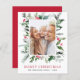Budget Merry Christmas Photo Card and customised picture and name with Holiday Greenery, Holly Berries and Red Background.