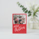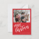 Modern Merry Christmas winter holidays family photo BUDGET red white small greeting note card template with trendy brush handwritten calligraphy script lettering. Personalise it with your photo and your text on both sides!