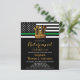 Thin Green Line Military Retirement Invitations. Celebrate years of dedicated service, your military retirement and invite friends and family to your military party with this modern Thin Green Line Flag with Gold Army Boots Military Retirement Invitation. USA American flag design in Police Flag colours, modern black green white and gold design. This military retirement invitation is also perfect for military graduation, soldier going away part, deployments and homecoming, change venue in personalisation. See our collection for matching military retirement gifts, military retirement party favours, and supplies. COPYRIGHT © 2021 Judy Burrows, Black Dog Art - All Rights Reserved. Budget Military Thin Green Line Boots Retirement
