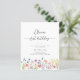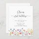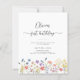 Celebrate a sweet milestone with this elegant first birthday invitation featuring delicate wildflower illustrations and modern handwritten script typography. Designed with a clean white background and soft pastel florals along the bottom, this invitation is perfect for a garden, floral, or “little wildflower” themed birthday party.