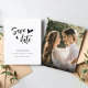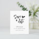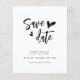 Design features the phrase "Save the Date" elegantly scripted across the centre in a flowing, modern calligraphy that hints at romance without overwhelming the senses. The typography combines contemporary sleekness with subtle vintage elements, striking a perfect balance between old and new. Nestled delicately beneath the script is a simple yet enchanting line drawing of a heart, its single, continuous stroke conveying both the simplicity and the unending nature of love. This minimalist design, rendered in a soft, neutral palette, promises a wedding event filled with elegance and understated charm.