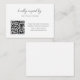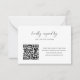 This wedding RSVP card has a clean white background with "kindly respond by" in flowing script at the top, your RSVP date below, and a QR code that sends guests straight to your wedding website to respond online. It's a simple, modern way to handle RSVPs without a separate response card and envelope. Date, website URL, and QR code are all fully editable.