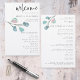 Minimalist Eucalyptus Wedding Program. Size 5.5” x 8.5” at a budget price, on an elegant 110 lb LINEN stock – for a luxury feel at great value, this is perfect for programs, as well as invitations and menus etc. This budget size alternative is also available in other paper choices. The SEMI-GLOSS 110 lb card stock is about the same thickness as a postcard, so also works well for invitations. The FELT 100 lbs paper is buff coloured, NOT white, so adds a rustic touch. The MATTE 80lbs paper stock is bright white, for crisp printing, great for your menus and programs, whilst the SATIN 80lbs paper is thin and light, ideal for enclosures. PLEASE NOTE THE OPTIONAL ENVELOPES ARE A LITTLE BIGGER IN SIZE AT 6.75” x 9” approx. This elegant design has artsy eucalyptus leaves in pastel teal and rose pink with text aligned to the right on each side. Welcome is in a set informal handwritten style script and the rest of the words you can easily personalise.