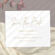 A value for money BUDGET alternative on a smaller size 4.5 x 5.6” semi-gloss 110lbs weight, which is of similar thickness to a postcard (however is not suitable to use as a postcard.). PLEASE NOTE there is ONE invite per sheet. Budget Minimalist Gold Script Wedding Save The Date. Simple elegance with Save The Date in a modern set script.The rest of the text you can easily personalise. Shown here in gold on white however the text and background colours can be changed if you wish via the customise further option.