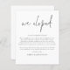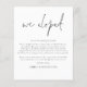 PLEASE NOTE There are two paper options to choose from for this size (4.5 x 5.6”) in the Budget range. For this product, I would highly recommend the semi-gloss which is a 110 gsm card stock, similar in thickness to a postcard. The Satin option is a much thinner paper 80gsm. The default is set to semi-gloss. ***NOTE there is ONE invite per sheet. Budget Minimalist QR Code Script We Eloped Announcement. With a QR code to a page where your guests can see your wedding photos on the back. Your QR code will be automatically generated to update the sample code in the design, when you simply change the sample URL in the template with your own URL. Or you can remove this if not required. A set informal handwritten script for We Eloped and the rest of the text you can easily personalise.