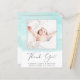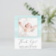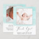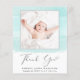 Affordable budget baby boy or baby girl birth announcement and thank you card featuring soft mint green watercolor brush strokes, your newborn's photo and "Thank You" in an elegant contemporary script with a heart swash. Personalise with his or her name, arrival date and birth stats in simple modern typography. On the reverse side, add an additional photo and a customised thank you and announcement message.