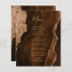 This elegant modern wedding menu features a mocha brown watercolor agate border trimmed with faux gold glitter. The customizable text combines gold-colored handwriting script and copperplate fonts. The reverse side features a matching brown and gold agate design.