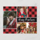 Budget, Elegant, Modern Red Buffalo Plaid 4 Photo Collage Merry Christmas Holiday Card. This festive, four (4) photo holiday card template features a pretty photo collage, red and black buffalo plaid / check pattern and says Merry Christmas! The „Merry Christmas” greeting text is written in a beautiful hand lettered typography font type. On the reverse side red and black buffalo plaid. Cheap Holiday cards.